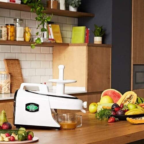 El Tribest Greenstar Elite tambiĂ©n es homogeneizador y máquina para hacer pasta, la buena noticia es que este modelo viene equipado con accesorios para hacer pasta. No es necesario adquirir accesorios adicionales. El espacio en blanco homogeneizador de cortesĂa transforma su exprimidor Green Star en un procesador de alimentos básico para hacer salsas, mantequilla de nueces, comida para bebĂ©s y postres de frutas congeladas.