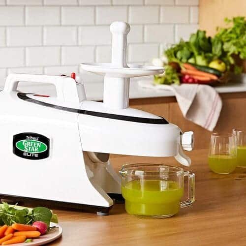 Tribest Green Star Elite es un potente exprimidor de trituración, que utiliza engranajes gemelos que trituran, mezclan y exprimen jugo sabroso de la más alta calidad. Es conocido por extraer la mayor cantidad de jugo, expulsar la pulpa más seca, exprimir hasta la última gota de jugo. Extrae la mayor cantidad de antioxidantes, enzimas y vitaminas.