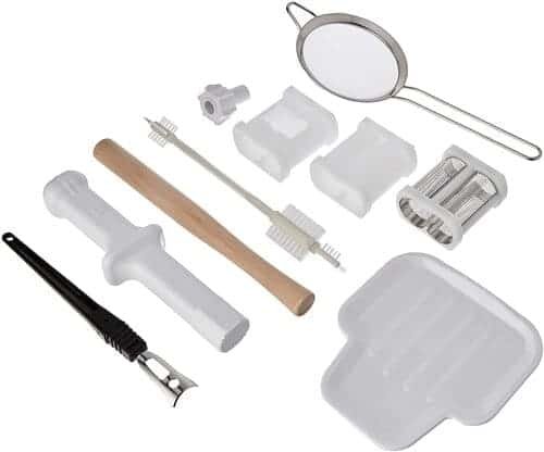 También puede hacer leche de soja y de almendras usando la misma pantalla en blanco. Con los accesorios para pasta, puede hacer un fideo plano o redondo con él, pero primero tendrá que hacer la masa. También incluye un palito de pan que hace accesorios si tiene ganas de comer palitos de pan altos en carbohidratos, pero no lo haga si está a dieta.